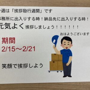 社内はもちろん、納品先でも気持ちの良い挨拶を心がけていきたいと思います。