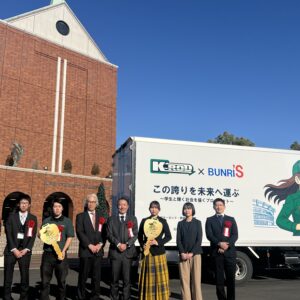 産学連携の事業として、学生と輝く社会を描くプロジェクトとして、学生の皆さんと一緒にトラックラッピングアートを制作しました。